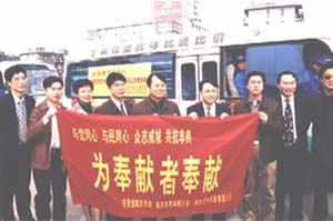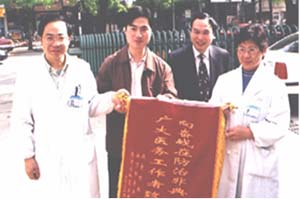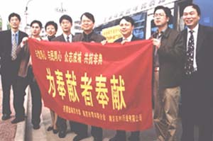 2003年4月26日,本公司與共青團南京市委、南京市青年聯(lián)合會組織部分青年代表帶著全市青年的心愿,向廣大奮斗在抗非典一線的醫(yī)務(wù)工作者送去錦旗和慰問品,表達對奉獻者真摯的祝福。在江蘇省人民醫(yī)院,當院領(lǐng)導(dǎo)和醫(yī)護人員從團市委書記許宏和圣和藥業(yè)董事長王勇手中接過錦旗和慰問品時深為感動。他們表示有全市人民的大力支持,一定能戰(zhàn)勝“非典”惡魔,奪取抗非典戰(zhàn)斗的勝利。許宏書記和王勇董事長對奮戰(zhàn)在抗非典一線的醫(yī)務(wù)人員所表現(xiàn)出的崇高精神表示欽佩,對他們所做的工作表示感謝,并囑咐他們一定要保重身體。