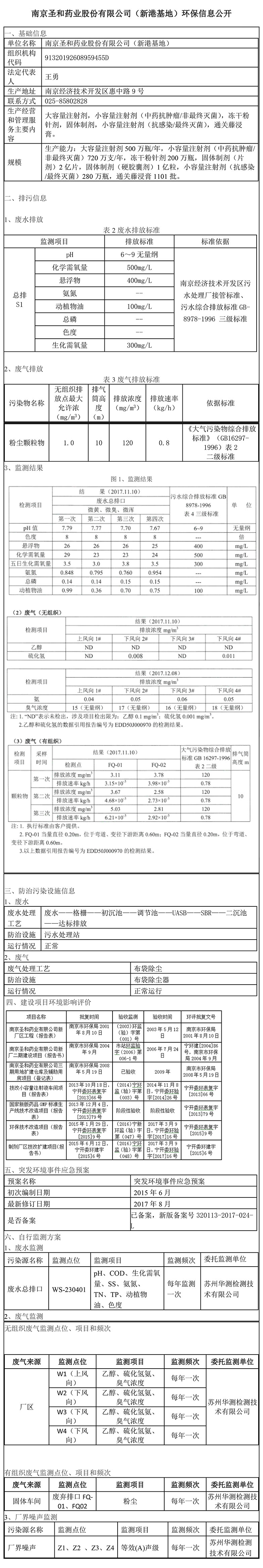 南京圣和藥業(yè)股份有限公司(新港基地)環(huán)保信息公開(kāi)