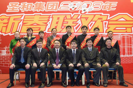 圖為公司高層和先進(jìn)員工合影