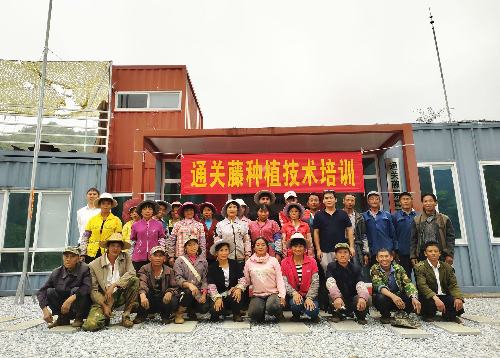 公司植物藥基地自2012年成立以來,按照GAP規(guī)范要求在蒙自市水田鄉(xiāng)建設(shè)了通關(guān)藤良種繁育、試驗研究、人工種植示范和野生撫育示范基地。基地以租賃方式向當(dāng)?shù)剞r(nóng)戶流轉(zhuǎn)土地,同時將出租土地的農(nóng)戶及當(dāng)?shù)刎毨簟㈤e散勞動力等召集到基地務(wù)工,穩(wěn)定的土地租金和勞務(wù)收入精準(zhǔn)有效地帶動了農(nóng)戶脫貧增收。