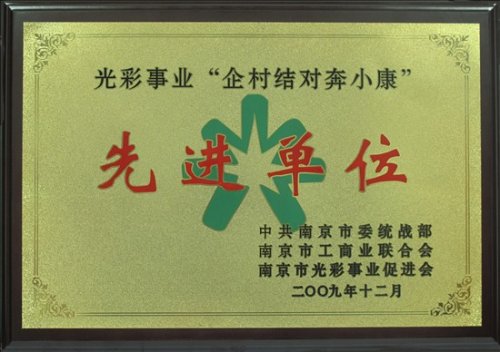 2009年12月18日下午,南京市委統(tǒng)戰(zhàn)部、市工商聯(lián)和市光彩事業(yè)促進會共同舉辦了“南京市光彩事業(yè)‘企村結(jié)對奔小康’活動先進單位”表彰大會,市領(lǐng)導(dǎo)錢繼紅等出席了會議。會議總結(jié)了三年來,我市光彩事業(yè)“企村結(jié)對奔小康”取得的成績,部署了下一階段工作,對三年來一直大力弘揚光彩事業(yè)精神,積極承擔(dān)社會責(zé)任并做出突出貢獻的非公有制經(jīng)濟組織進行表彰。會上,我公司被授予“南京市光彩事業(yè)‘企村結(jié)對奔小康’活動先進單位”稱號。