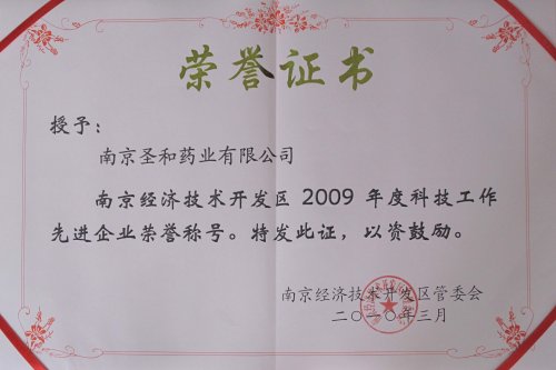 日前,南京經(jīng)濟(jì)技術(shù)開發(fā)區(qū)管委會授予我公司“南京經(jīng)濟(jì)技術(shù)開發(fā)區(qū)2009年度科技工作先進(jìn)企業(yè)”稱號。