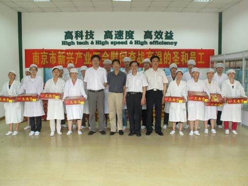 7月15日,夏日炎炎,南京市新興產(chǎn)業(yè)工會王軍主任、朱耀華處長一行五人在戚良猛副總經(jīng)理的陪同下,冒著酷暑來到我司新港生產(chǎn)基地,慰問奮戰(zhàn)在生產(chǎn)一線的廣大職工,為一線職工送上了防暑降溫慰問品,給職工們帶來了清涼和關(guān)懷。
