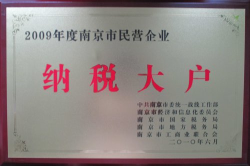 日前,由中共南京市委統(tǒng)戰(zhàn)部、南京市經(jīng)濟(jì)和信息化委員會(huì)、南京市人力資源和社會(huì)保障局、南京市國家稅務(wù)局、南京市地方稅務(wù)局、南京市工商業(yè)聯(lián)合會(huì)聯(lián)合評出了“2009年度南京市民營企業(yè)納稅大戶”,我公司在此次評比中光榮上榜。