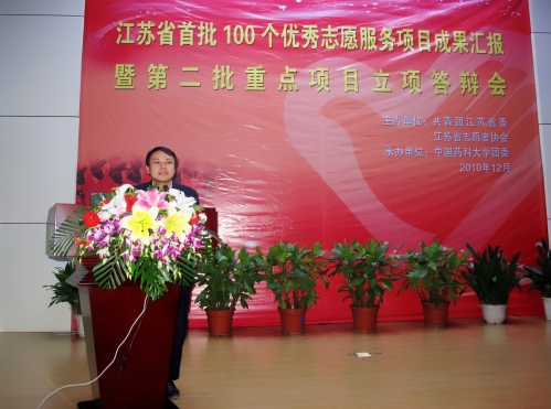 12月3日,由共青團(tuán)江蘇省委、江蘇省志愿者協(xié)會主辦、中國藥科大學(xué)團(tuán)委承辦,南京圣和投資集團(tuán)贊助的江蘇省首批100個優(yōu)秀志愿服務(wù)項目成果匯報暨第二批重點(diǎn)項目立項答辯會在中國藥科大學(xué)報告廳舉行。團(tuán)省委書記練月琴同志出席會議并講話。