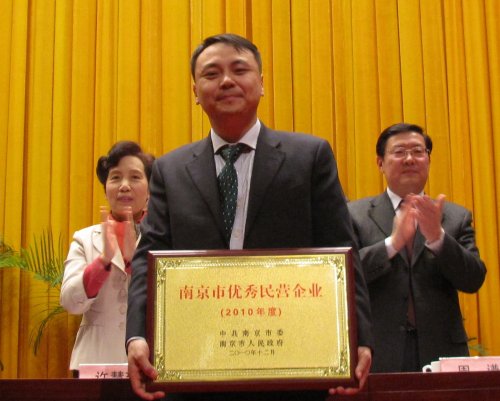 12月16日,王勇董事長參加了由南京市委、市政府召開的全市民營經(jīng)濟(jì)工作會議。市委書記朱善璐出席會議并講話。會上,市委副書記陳紹澤宣讀2010年度南京市優(yōu)秀民營企業(yè)的表彰決定,市領(lǐng)導(dǎo)為獲獎企業(yè)頒獎,我公司王勇董事長代表企業(yè)上臺領(lǐng)獎。