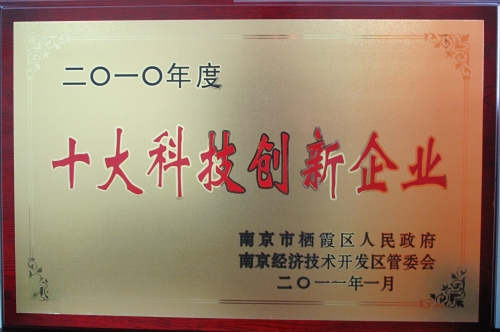 1月12日,在南京市棲霞區(qū)機(jī)關(guān)大禮堂召開2010年度科技工作先進(jìn)企業(yè)表彰大會。我公司被南京市棲霞區(qū)人民政府、南京經(jīng)濟(jì)技術(shù)開發(fā)區(qū)管委會評為2010年度十大科技創(chuàng)新企業(yè)。公司董事長兼總經(jīng)理王勇參加了會議。
