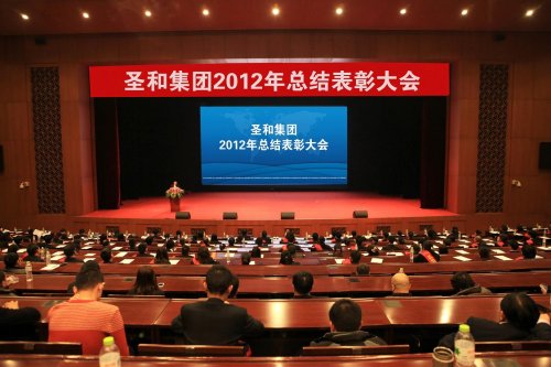 本網訊 1月25日,圣和集團2012年度總結表彰大會在金陵國際會議中心紫金廳隆重召開。會議全面總結了2012年的各項工作,表彰了過去一年中為圣和建設做出優(yōu)異成績的先進集體和個人,規(guī)劃部署了2013年的各項工作。集團副總裁蘇世功主持會議,集團領導、在寧員工、各大區(qū)總經理、地區(qū)經理、獲獎人員等共700余人參加了本次大會。