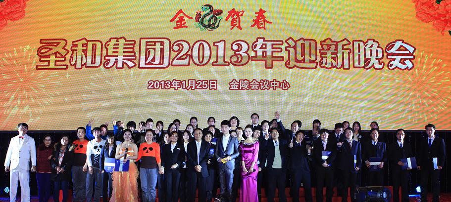 金龍笑歸隱,銀蛇喜相迎。1月25日晚,圣和集團2013年迎新晚會在金陵國際會議中心中華廳隆重舉行,在寧員工及家屬、駐外員工代表1000余人歡聚一堂。晚會現(xiàn)場喜氣融融,大屏幕上不時滾動播放公司宣傳片、大事記、獲獎員工照片和攝影展獲獎作品。