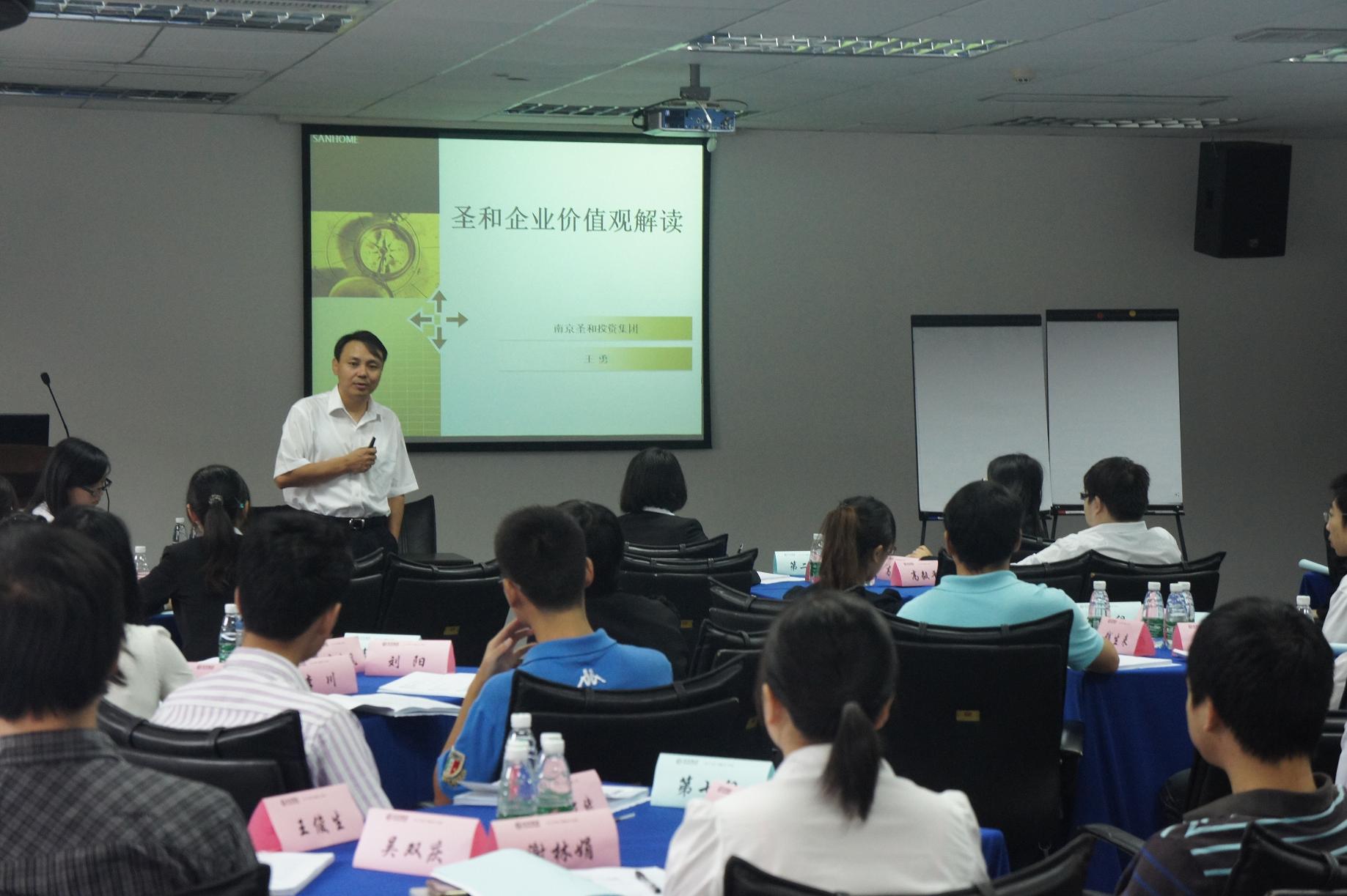 培訓(xùn)課上,王勇董事長首先跟學(xué)員詳細(xì)解讀了圣和的企業(yè)文化,并與學(xué)員互動(dòng)交流,氣氛十分熱烈。隨后,與大家一同分享了一段發(fā)人深省的視頻和故事,殷切希望新員工在今后的工作生活中,秉承圣和核心價(jià)值觀,做到誠信正直、積極主動(dòng)、擁抱變化,擔(dān)負(fù)起“讓更多人享受健康的快樂”這一使命,在追求卓越的道路上與圣和攜手前行,共同發(fā)展進(jìn)步。王勇董事長精彩的授課與分享,讓所有學(xué)員內(nèi)心都深受啟發(fā)與鼓舞,對(duì)未來的工作和生活都充滿了激情和信心,更以能加入圣和大家庭為榮,愿為“打造百年圣和,成就卓越常青藤企業(yè)”這一圣和戰(zhàn)略目標(biāo)而奮斗。