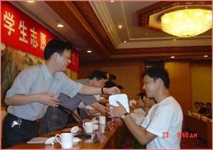 全國青聯委員、南京十大杰出青年、我公司董事長兼總經理王勇先生到會并致辭。王勇先生一向熱心社會公益事業(yè),當他聽說這些志愿者要放棄優(yōu)越的生活環(huán)境和良好的工作條件去支援服務西部建設時,深深的為他們敢于接受惡劣自然環(huán)境和艱苦生活條件的挑戰(zhàn)、自愿到經濟落后的西部無私奉獻的精神所感動,他認為,大學生志愿服務西部計劃是在全面建設小康社會、加快推進社會主義現代化建設的新形勢下推出的一項功在當代、利及長遠的崇高事業(yè),西部的未來、祖國的未來肯定會因為他們而更加精彩。王勇董事長熱情洋溢的講話受到志愿者的熱烈歡迎,數次被掌聲打斷。