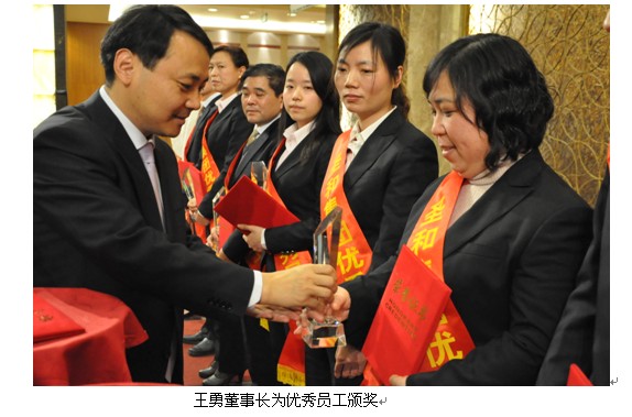 會(huì)上對2011年度先進(jìn)個(gè)人和集體進(jìn)行表彰,并舉行了隆重的頒獎(jiǎng)儀式。徐立軍等17人被授予“優(yōu)秀員工”稱號,朱正偉等34人被授予“先進(jìn)員工”稱號,北京二區(qū)等10個(gè)辦事處被授予“優(yōu)秀辦事處”稱號,趙永麗等16人被授予“銷售能手”稱號,馬艷等36人被授予“優(yōu)秀代表”稱號,蔡翠等19人被授予“企業(yè)文化建設(shè)先進(jìn)個(gè)人”稱號。