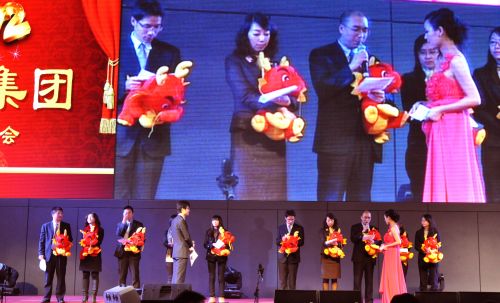 玉兔辭舊歲,蛟龍迎春歸。1月14日晚,圣和集團(tuán)2012年新春聯(lián)歡晚會在金陵國際會議中心中華廳隆重舉行,在寧員工及家屬、駐外員工代表800余人歡聚一堂。晚會現(xiàn)場喜氣融融,大屏幕上同時滾動播放公司宣傳片、2011年公司大事記、獲獎員工照片和漢府街項目專題片,真人玩偶位列入口兩側(cè)散發(fā)小禮品,逗得孩子們盡現(xiàn)歡顏。晚會在一片歡聲笑語中拉開帷幕。