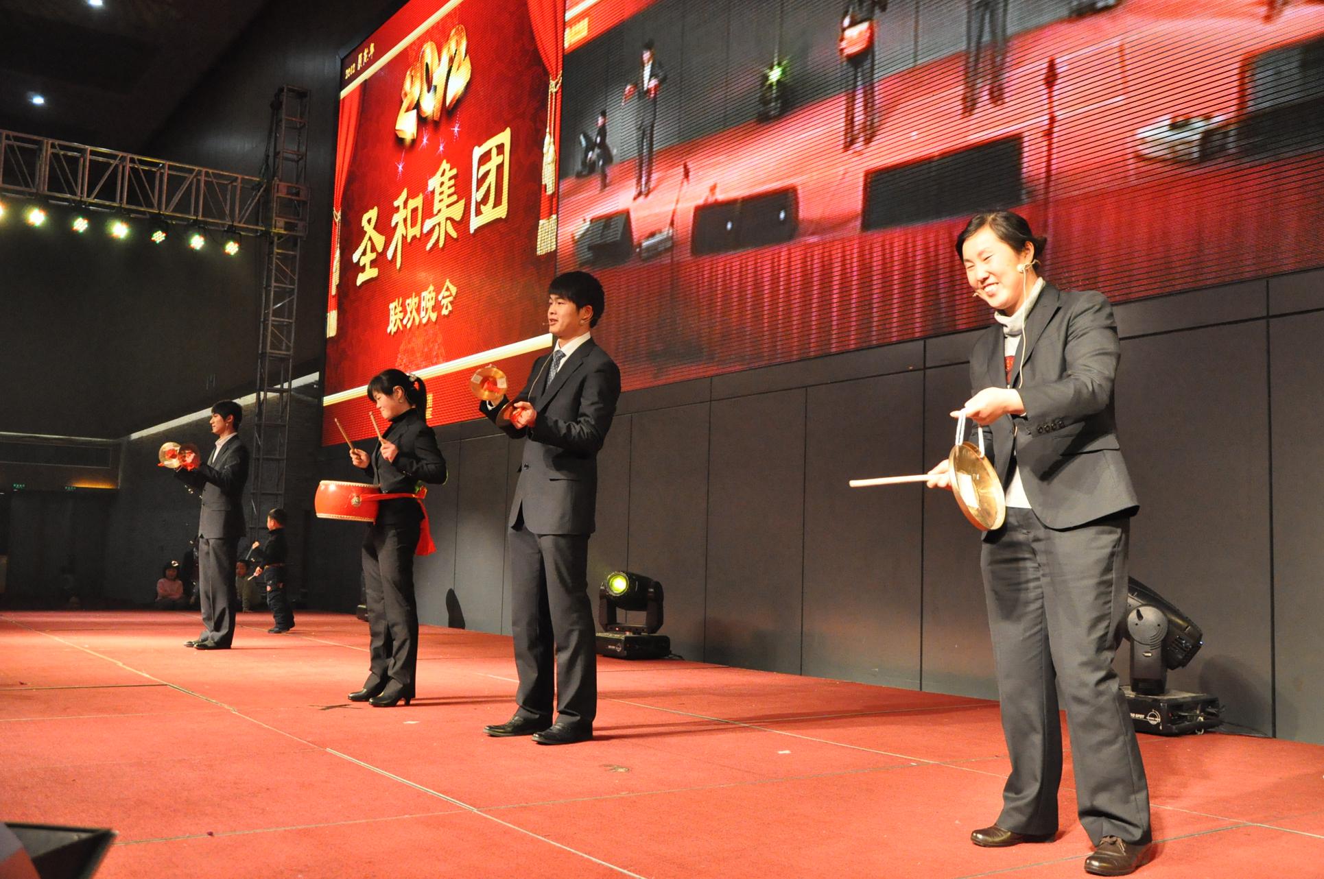 唯美的沙畫拉開了演出的序幕,為所有到場人員再次展示了圣和集團(tuán)一路走來的歷程與輝煌成就,也展示了新的希望和新的征程。隨后,屬龍的員工代表上臺,每人一句吉言群龍大拜年;研究院員工的對唱《國家》,讓大家一飽耳福;鑼鼓叮咚敲起來,藥廠的四位員工帶來了《三句半》表演,喜迎佳節(jié);精彩的瑞士軍鼓演奏,給大家?guī)砹瞬灰粯拥挠^賞視覺;藥業(yè)公司溫歡歡帶來的獨(dú)唱《原來你也在這里》,讓每位圣和人享受緣分帶來的歡樂;現(xiàn)場的近景魔術(shù)在晚會過程中,掀起了一陣高潮,魔術(shù)的神奇讓大家驚奇連連;李緒斌的獨(dú)唱《青藏高原》,讓每一位的聽覺得到了洗禮;精彩的“墨舞”表演,把書法與舞蹈結(jié)合的淋漓盡致;置業(yè)公司馬路廣的獨(dú)唱《九百九十九朵玫瑰》、藥業(yè)公司崔紅俊的越劇《天上掉下個林妹妹》,讓我們感受到了現(xiàn)代與古典的聽覺美。全場暗燈后,熒光舞帶來的炫目視覺,讓每一位觀眾感覺到了藝術(shù)的獨(dú)特。常懷感恩之心的人是最幸福的,常懷感激之情的生活是最甜美的。圣和集團(tuán)對于所有的圣和人,都持有一顆感恩的心,醫(yī)貿(mào)公司代表帶來手語合唱舞蹈表演《感恩的心》。最后,王勇董事長帶領(lǐng)演出人員合唱了一首《難忘今宵》,在悠揚(yáng)的旋律和深情的歌聲中圓滿結(jié)束了整場晚會。